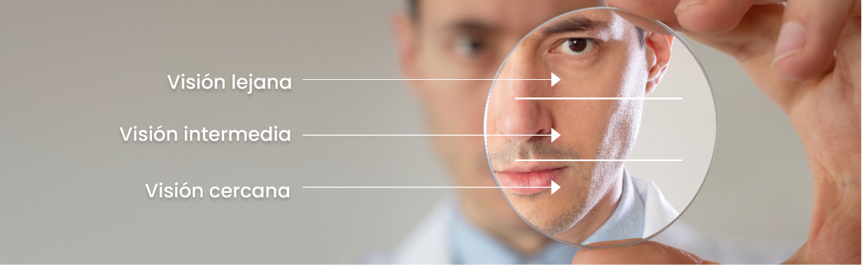Los lentes multifocales o progresivos son lentes con una graduación variable a lo largo de la superficie, lo que permite ver claramente en todas las distancias con un solo par de lentes. Utilizando la parte superior del lente se pueden ver los objetos lejanos, la parte del medio sirve para enfocar objetos en distancia intermedia y la parte inferior para leer o ver objetos cercanos.